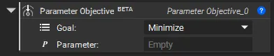 - The Parameter Objective block specifies a goal for Parameter Optimization. The objective guides the optimizer on the desired outcome.