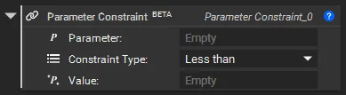 - The Parameter Constraint block defines a condition that a Parameter must satisfy. Parameter Constraints can be used to enforce limits on the Parameter to determine a valid solution space.