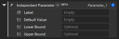 - The Independent Parameter block creates an independent optimization parameter that can vary within optional bounds during optimization.