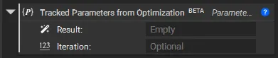 - The Tracked Parameters from Optimization block extracts all Tracked parameters at a specific iteration from a Parameter Optimization result.