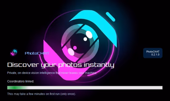File Size: 2.96 GB PhotoCHAT AI: Your Entire Photo Library, Instantly Searchable. Turn years of photos into a searchable memory. Type what you remember-"golden retriever at the beach," "Bella standing next to a tall building from Mar 21," or "hiking at sunrise"-and find the exact shots in seconds. PhotoCHAT AI runs entirely on your computer. No uploads. No accounts. No subscriptions.
