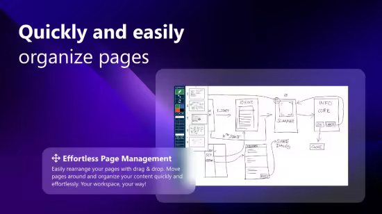 • Page Management: Use the page index with thumbnails to sort pages or switch with a tap. Browse through pages, add new ones, delete, or clear page content.