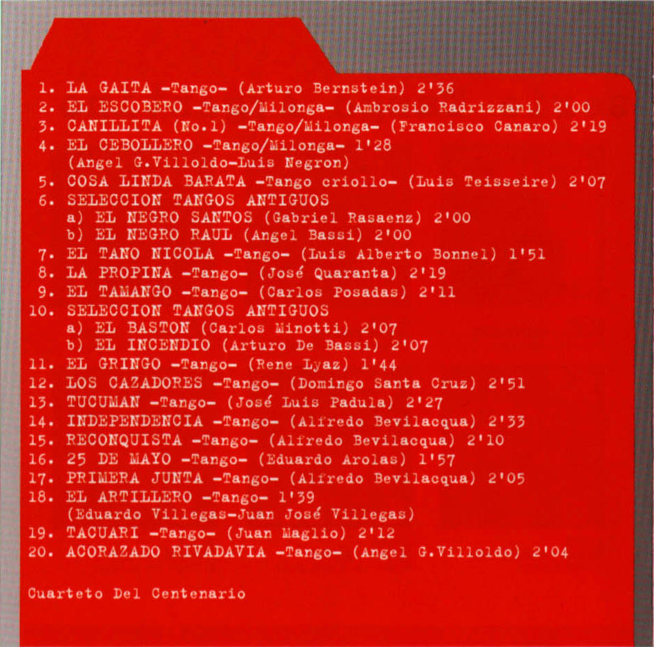 Re: CUARTETO DEL CENTENARIO TANGOS DEL 900