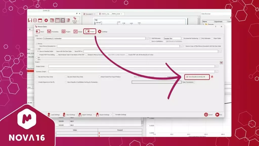 Figure 6. New checkbox to save results to a NoSQL DB within the Output tab.6. Mnova Hub 1.1Mnova Hub 1.1 now integrates with LOGS, a cloud-native platform serving as a centralized repository for analytical data, allowing users to retrieve, modify, and store data in LOGS directly from within Mnova.