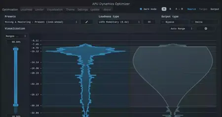The APU Dynamics Optimizer is a dynamics optimization tool designed to support modern loudness types (LUFS, True Peak). Underneath the hood, the optimizer uses the same compression engine as the APU Loudness Compressor, but benefits from the full audio waveform instead of real-time measurements. This allows the gain envelope to be meticulously optimized across the entire waveform.