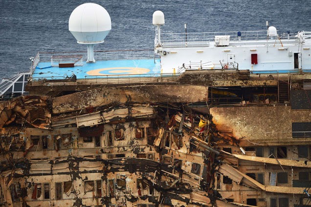[font=] [/font]Foto tirada a 17 de setembro mostra o "Costa Concordia", navio que encalhou ao largo da ilha de Giglio, num acidente que causou 32 morto
