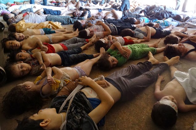 Crianças mortas, em agosto, durante um ataque com gás tóxico, nos arredores de Damasco, Síria