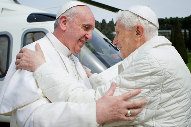 Bento XVI saúda o Papa Francisco, a 23 de março