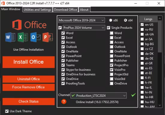 Office Installer / Office Installer Plus 1.30 File size: 40.2 MB The program is designed for on-line and offline installation of Office 2016/2024 C2R. There is also the ability to create your own Office distribution for subsequent installation of Office off-line. Working with the program 1. Uninstall Office C2R using the Uninstall button. 2. Remove Office C2R using "Force Remove Office" and restart your computer. 3. Install Office by clicking the "Install" button HOMEPAGEhttps://msfree.su/index.php