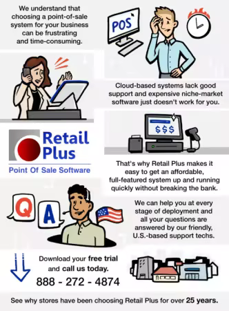 With 25 years in the field, Retail Plus has evolved into a cutting edge POS system while ease of use remains a priority. It delivers fast checkouts, accurate inventory control, and instant up-to-the-minute reports. This leads to bigger profits and more time to focus on growing your business.