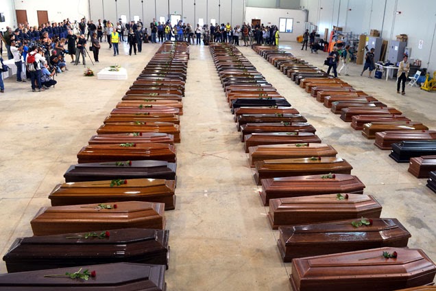 Caixões dos imigrantes que naufragaram, em outubro, em Lampedusa. Mais de 300 perderam a vida