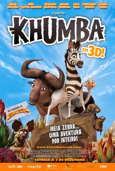 Em 'Khumba'. Khumba é uma pequena zebra que nasce com a metade do corpo sem listras. O animal logo sofre o preconceito de todos ao redor, e segundo uma lenda local, o seu nascimento é responsável pela falta de chuva na região. Para tentar remediar este grande problema, Khumba decide partir em uma viagem solitária pela savana africana, para encontrar um lago mágico capaz de restituir as listras que lhe faltam, trazendo de novo a chuva ao seu povo. No caminho, ele encontra outros animais com traumas pessoais e isolados de seu bando, como uma fêmea gnu, um avestruz e um tigre cego de um olho.